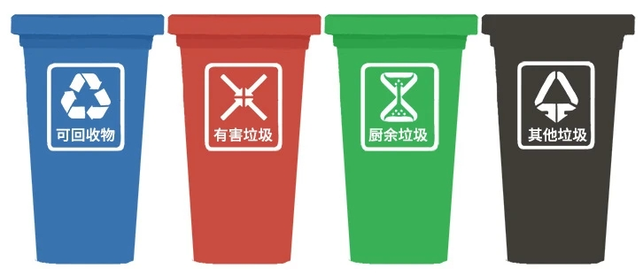 垃圾分类势在必行 那么,垃圾分类的原因是什么? 减少环境污染 通过填埋或者焚烧处理垃圾,即使远离生活场所对垃圾进行填埋,并且采用了相应的隔离技术,也难以杜绝有害物质渗透。 这些有害物质会随着地球的循环而进入到整个生态圈中,污染水源和土地,通过植物或者动物,最终影响到人们的身体健康。 节省土地资源 就目前而言,垃圾填埋是最简单也是最方便的处理方式,但是对于未来的发展而言却是极为不利的。 填埋场都属于不可修复场所,即填埋场不能够重新作为生活小区。如果将土地资源变成垃圾的处理地,那么就相当于慢性自杀,未来进行土地修复的费用就会很昂贵。 再生资源的利用 垃圾一旦通过填埋或者焚烧的方式处理,想要重新利用就是极为困难的。 在垃圾处理之前,通过垃圾分类回收,就可以将垃圾变废为宝,如回收纸张能够保护森林,减少森林资源的浪费;回收果皮蔬菜等生物垃圾,就可以作为绿色肥料,让土地能够更加肥沃。 01 什么是垃圾分类 垃圾分类,是指按一定规定或标准将垃圾分类储存、分类投放和分类搬运,从而转变成公共资源的一系列活动的总称。分类的目的是提高垃圾的资源价值和经济价值,力争物尽其用。 02 垃圾分类标准 生活垃圾一般按照可回收物、有害垃圾、厨余垃圾、其他垃圾进行“四分类”。 03 垃圾分类标识 可回收物收集容器为蓝色,有害垃圾收集容器为红色,厨余垃圾收集容器为绿色,其他垃圾收集容器为黑色。