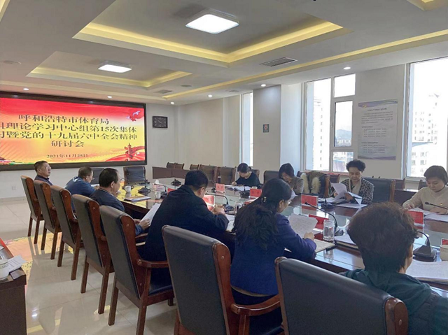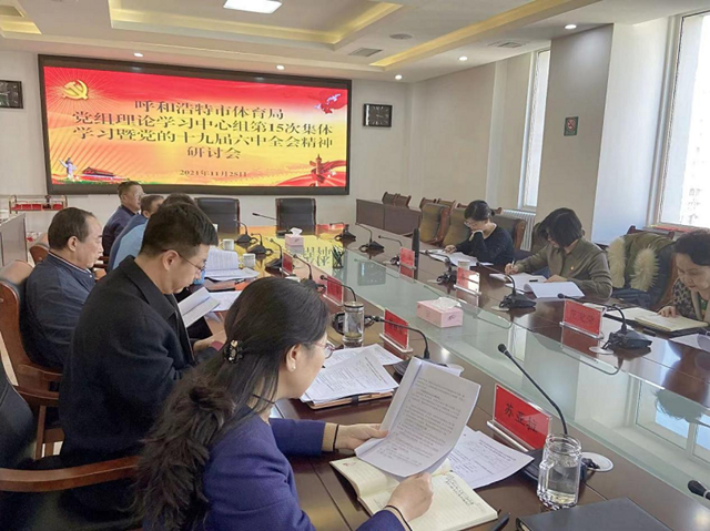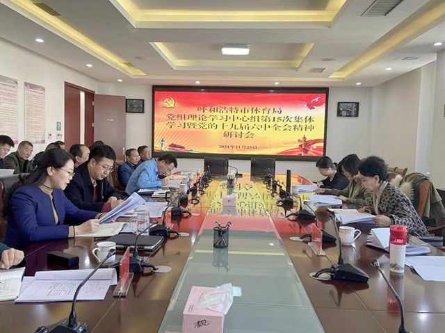 会议强调,体育局各级党支部和广大党员干部要从历史和全局的高度深刻认识党的十九届六中全会的历史地位、重大意义,要坚定不移高举习近平新时代中国特色社会主义思想伟大旗帜,不断提高政治站位与思想认识,增强贯彻落实的政治自觉、思想自觉、行动自觉;要深刻领会党的十九届六中全会精神的核心要义、丰富内涵,切实把思想和行动统一到全会精神上来;切实增强“四个意识”,坚定“四个自信”,做到“两个维护”。要坚持以十九届六中全会精神为指引,从党的百年奋斗历史经验中汲取前进的力量,在新发展阶段更加奋发有为地推动呼市体育事业高质量发展;要把贯彻全会精神体现到做好当前各项工作上,切实用全会精神统一思想、凝聚共识、坚定信心、汇聚力量。