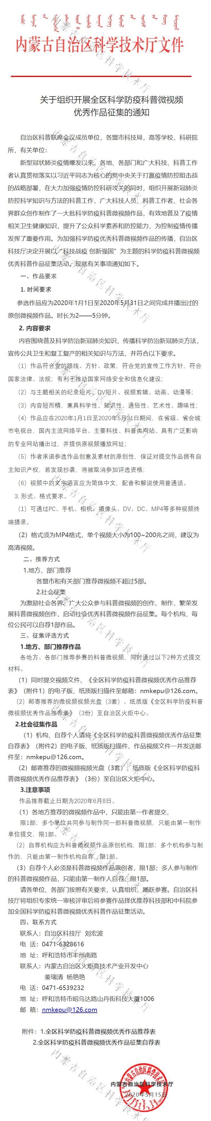 附件:内蒙古科学技术厅《关于组织开展全区科学防疫科普微视频优秀作品征集的通知》.jpg