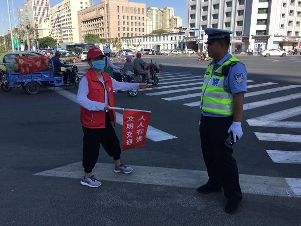 在所属岗勤中队负责人的统一安排下,市科技局的志愿者们协助交警对行人和非机动车闯红灯、越线等待、不各行其道、翻越护栏、驾乘电动车不佩戴头盔等违反交通规则的行为进行劝导,充分发挥文明交通志愿者队伍在协助交通管理工作中的重要作用,进一步提升我市主要交通路口管理水平,增强市民文明交通意识,改善交通环境,亮化市容市貌,以实际行动为我市创建全国文明城市贡献力量。(郭鑫 包文洁)