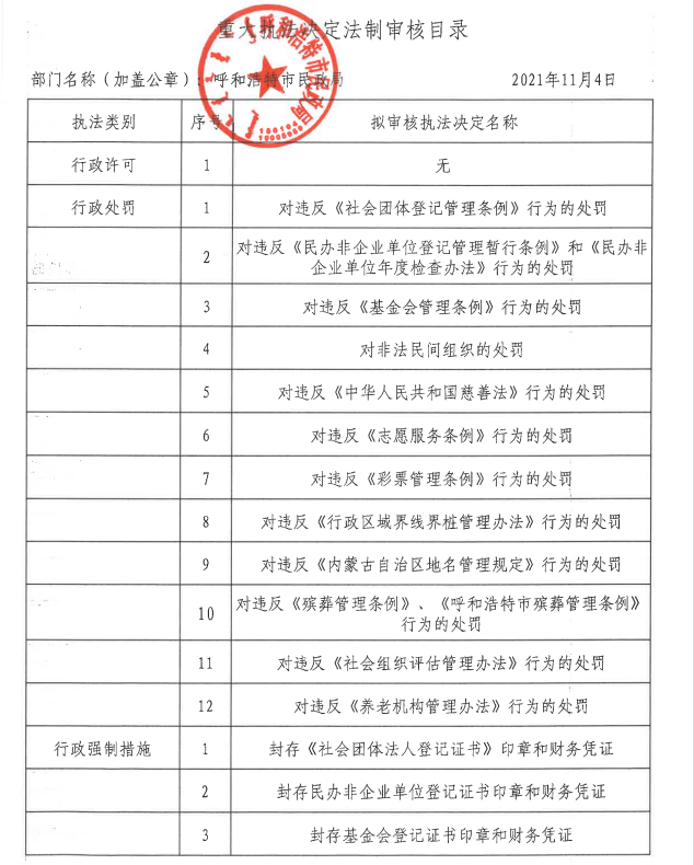 重大执法决定法制审核目录