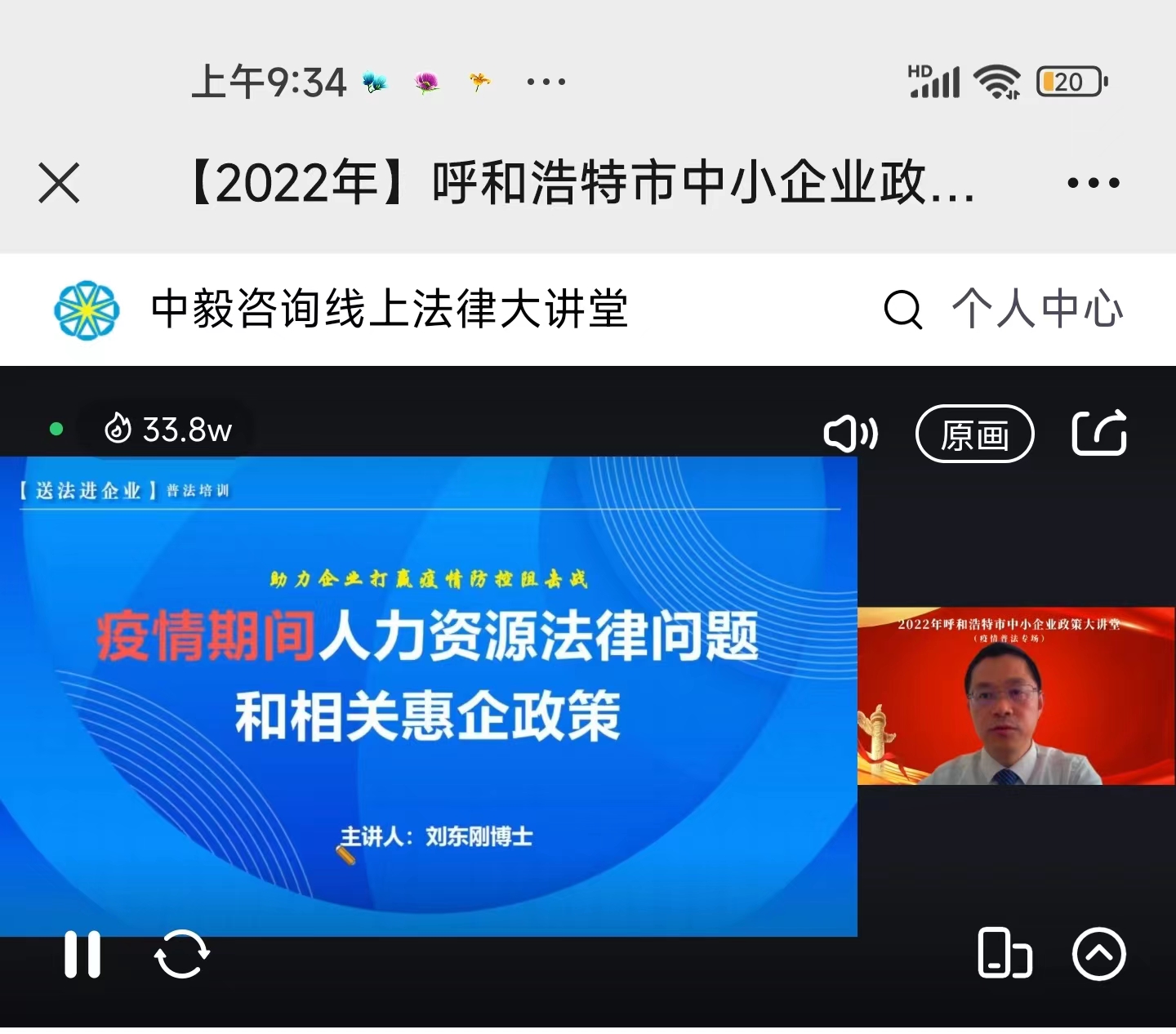 为尽快打赢疫情防控阻击战,迅速宣传普及人社助企纾困新举措、新政策,助力企业早日复工复产。10月14日上午,由呼市人社局、呼市司法局牵头,精心组织了别开生面的线上“人力资源专场”普法培训活动。