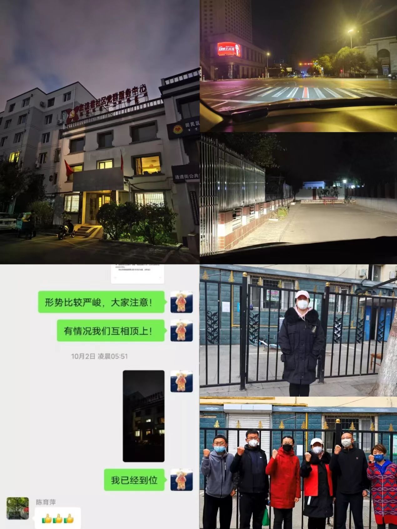 早上天还未亮,一束汽车车灯照亮了义和巷社区的防疫值守点位,是谢芳同志,她每次都是提前到岗,为当天的值守工作做好准备。她说“要站好第一班岗。”