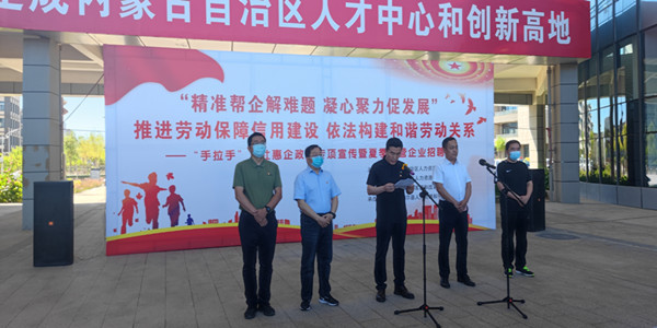 仲夏的和林格尔风和日丽,绿影婆娑,活力新区魅力四射。6月24日上午,由自治区人力资源和社会保障厅、市人力资源和社会保障局主办,和林格尔县人民政府承办的“精准帮企解难题,凝心聚力促发展,推进劳动保障信用建设,依法构建和谐劳动关系”人社惠企政策宣传暨夏季民营企业招聘活动,在新区智能产业园拉开序幕。
