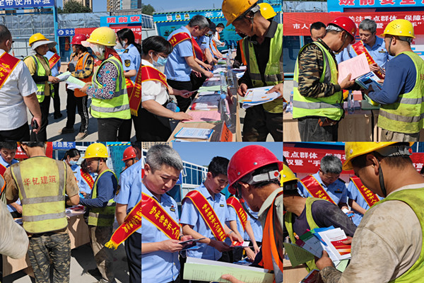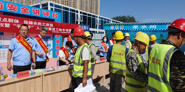 七月的青城姹紫嫣红,柳丝垂金。为了依法保护农民工合法权益,切实保障农民工工资支付,7月20日上午,市人社局、市综合行政执法支队深入赛罕区华润置地公司华亿建筑工地,组织开展了“关注重点群体 保障农民工权益 劳动保障维权暨“手拉手”人社政策进工地”专项宣传活动。