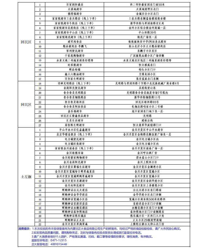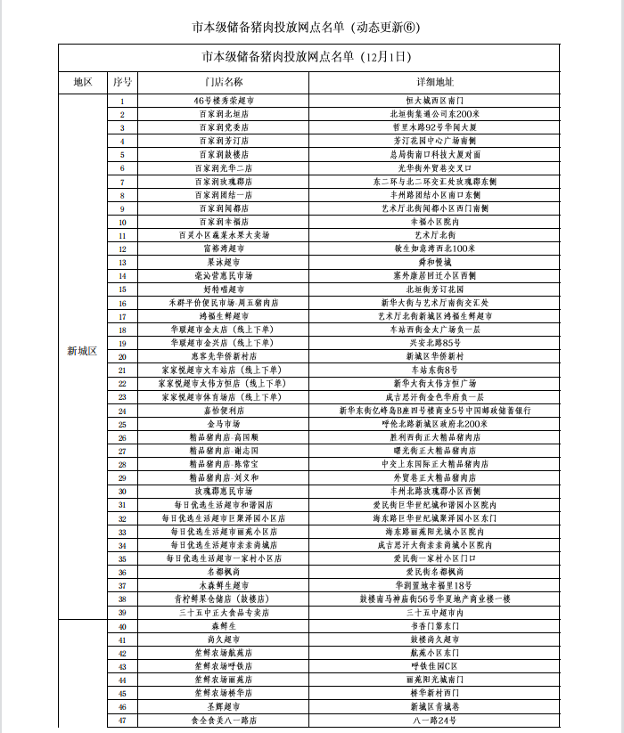 市本级储备猪肉投放网点名单(动态更新)⑥