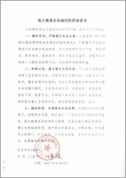 电子商务企业诚信经营承诺书—科尔沁电商