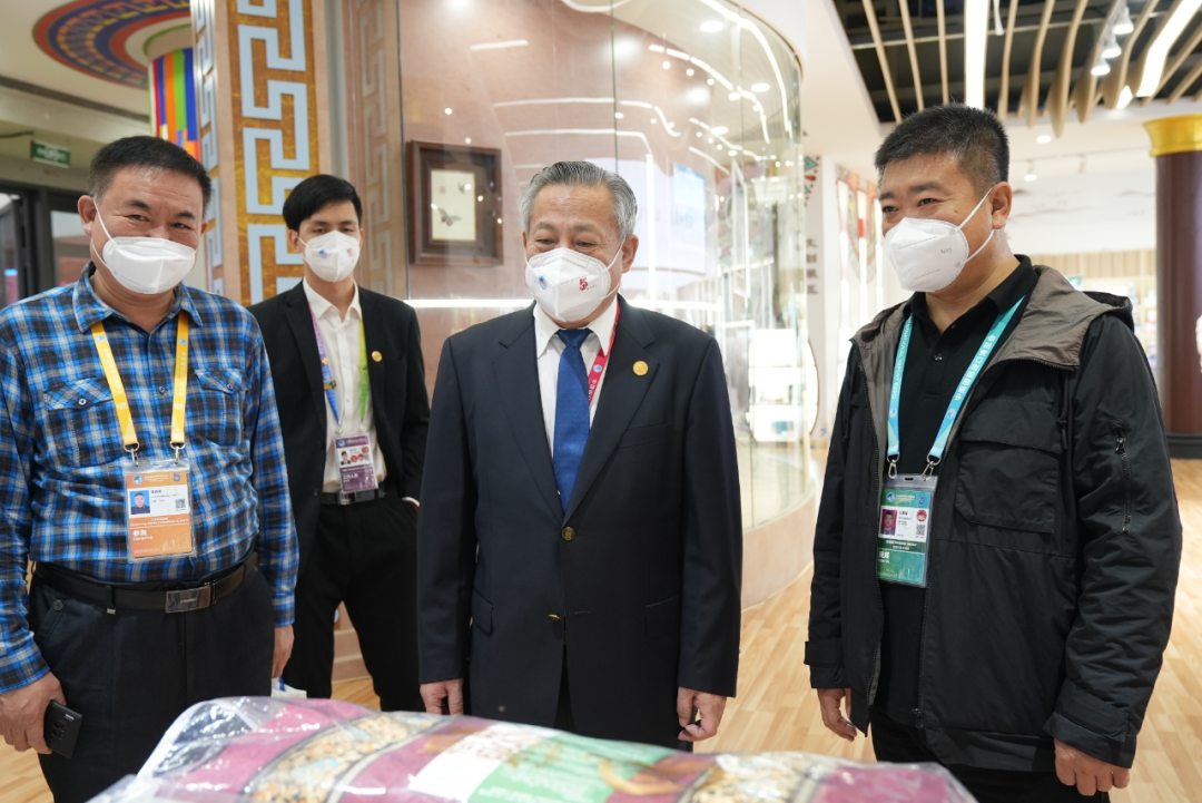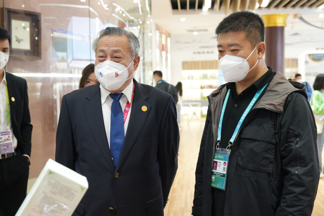 11月9日上午,中国国际进口博览局副局长、国家会展中心(上海)有限责任公司党委书记、副总裁刘福学同志参观内蒙古人文交流活动展。