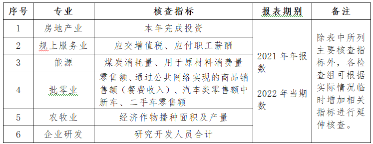 各专业核查指标由执法检查组中相关专业工作人员负责核查。具体核查指标如下: