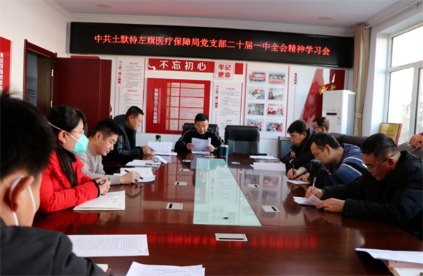 2023年1月16日,中共土默特左旗医疗保障局党组组织学习习近平总书记在二十届一中全会上的讲话精神,党组书记、局长秦义胜主持会议,全局党员干部参加会议。
