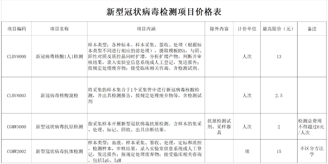 为进一步助力新型冠状病毒肺炎疫情防控工作,减轻群众负担,经研究,决定调整新型冠状病毒检测项目价格政策,现将有关事项通知如下: