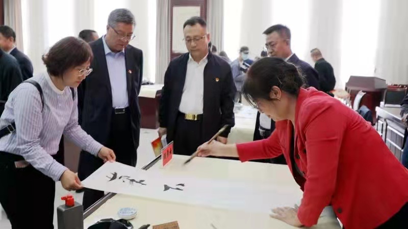 活动现场艺术创作氛围浓厚,书法家们围绕庆祝建党百年这一主题,挥毫泼墨,各展其长,创作出一幅幅精美的书法、绘画作品。山水画情趣盎然,展现了祖国大好河山;书法作品笔力遒劲、气势磅礴,显示了党的事业的蓬勃发展。现场书法家表示,这次与市住建局书画爱好者学习和交流,是为礼赞中国共产党建党百年的丰功伟绩,致敬庆祝中国共产党百年的光辉历程,讴歌赞颂中国共产党百年的辉煌功绩。