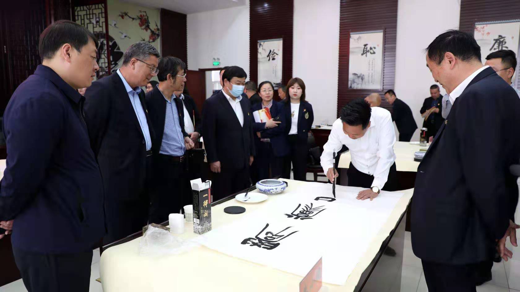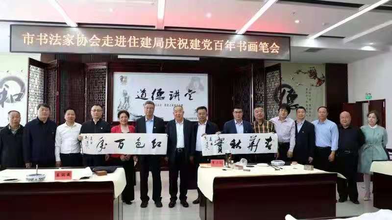 为庆祝中国共产党成立100周年,5月25日下午,市书法家协会走进市住建局举办庆祝建党百年书法笔会活动。市委党史学习教育领导小组办公室协调组副组长王新文、市委党史学习教育第九巡回指导组组长薛占山一行,市住建局党组成员、副局长刘金利,市住建局调研员杨来宾、高峰,局机关各支部书记,局属各单位主要负责人参加活动并观摩作品。