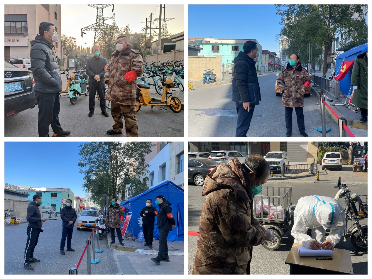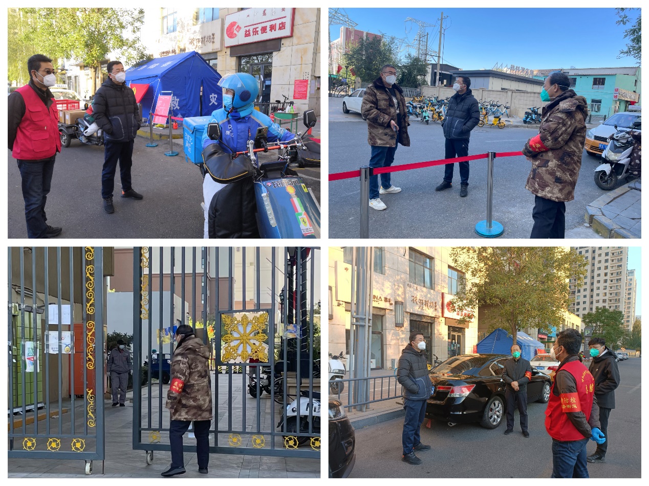 王永亮局长、郭彪调研员带队“党员突击队”队员值守万达二期西区大门卡口处,既当指挥员、又当战斗员,与一线干部共御疫情,对人口数量较大的万达二期西区防疫工作、确诊人员情况、封控单元排查及居民生活情况进行了详细的探询;与一线党员干部共同值守,对外卖员、快递员等严格做好基本信息登记,对物资和周围环境进行全面消杀,及时劝导和阻止人员随意流动、聚集、不戴口罩等行为,做好政策宣讲,严格落实各项管控措施。针对社区提出的当前面临的物资不足的问题,王永亮局长第一时间安排部署,克服困难、尽己所能,全力帮助社区做好疫情防控工作。